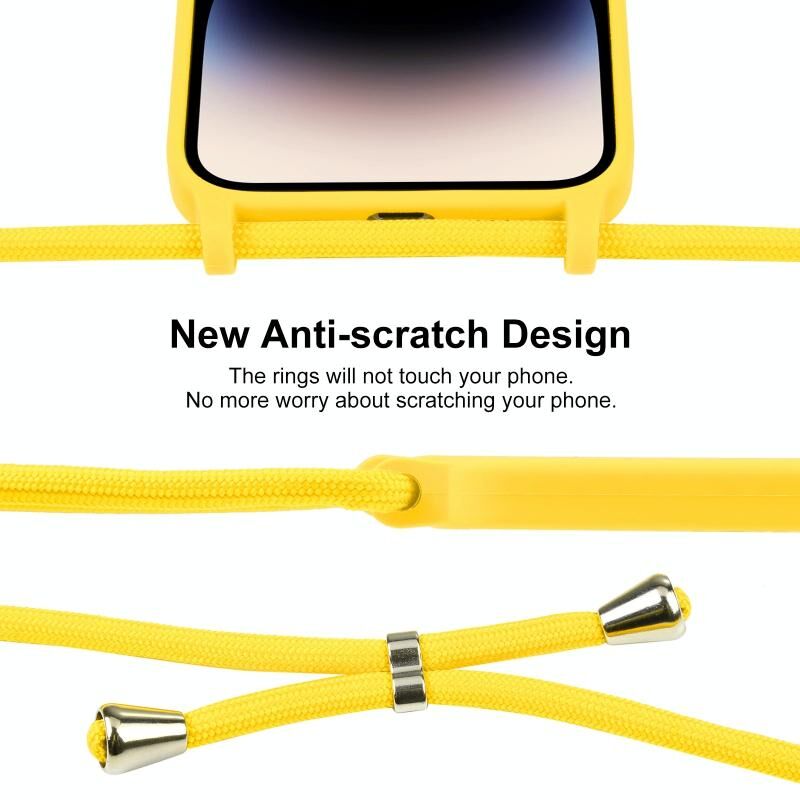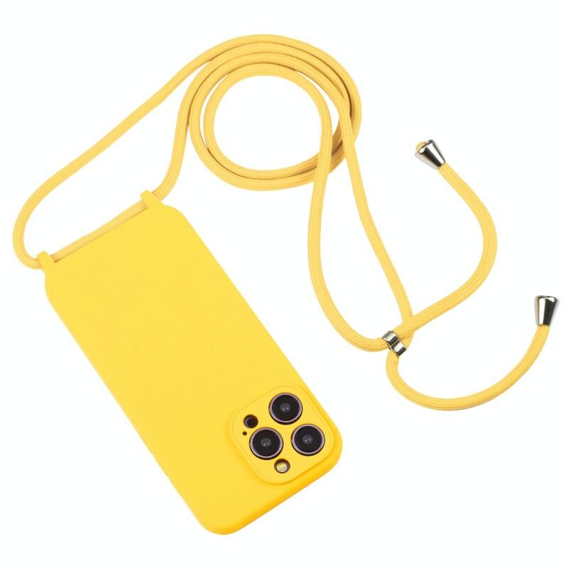 Θήκη για iPhone 15 Pro από υγρή σιλικόνη με λουρί Crossbody (Πορτοκαλί)
