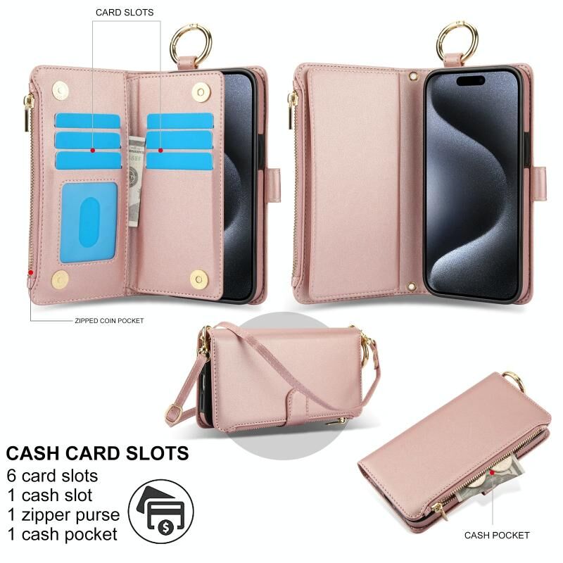 2. Λειτουργία πολλαπλών καρτών & πορτοφολιού: 6 υποδοχές καρτών και ένα διαμέρισμα με φερμουάρ για την αποθήκευση των πιστωτικών σας καρτών, μετρητών ή μικρών σημειώσεων για καθημερινή χρήση.
