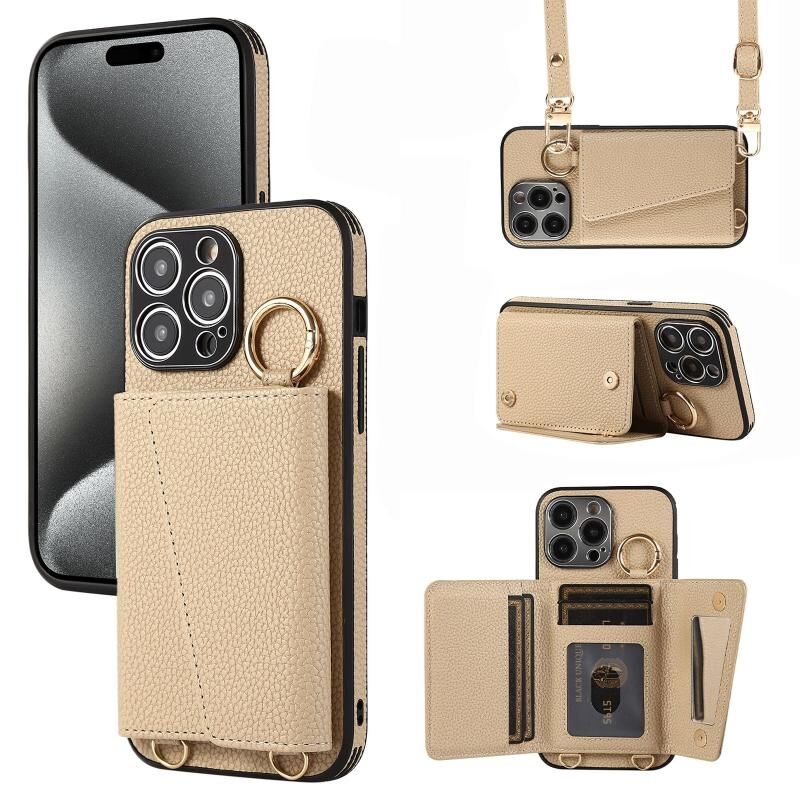 Θήκη κινητού τηλεφώνου για iPhone 15 Pro, δερμάτινη θήκη πλάτης με δακτύλιο και θήκη για κάρτες (Μπλε)