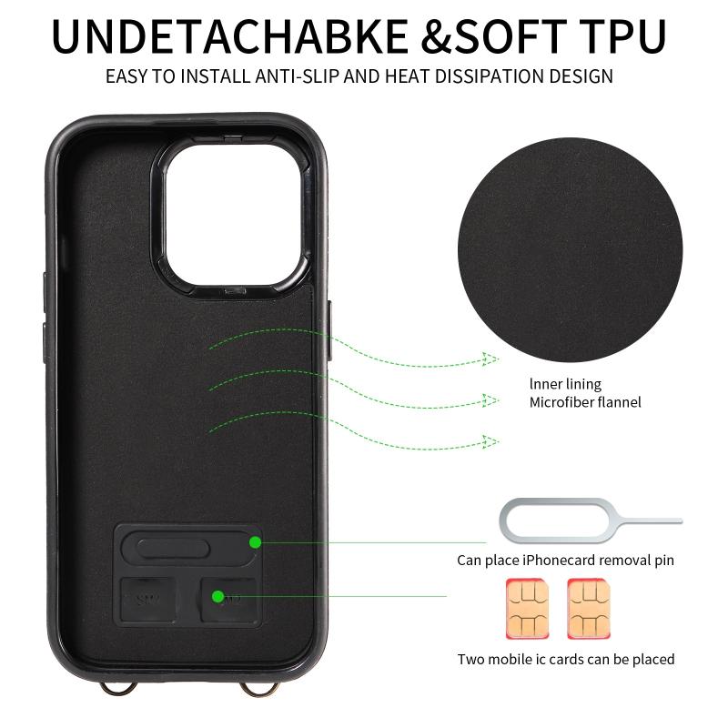 For iPhone 15 Pro Crossbodys Card Bag Ring Holder Leather Phone Case(Black)