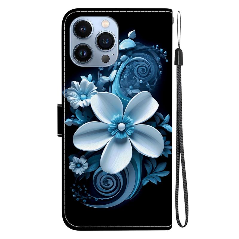For iPhone 15 Pro Crystal Texture Colored Drawing Leather Phone Case(Black Orchid)