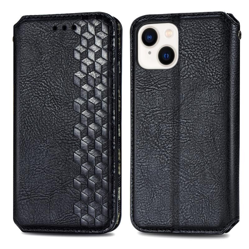 For iPhone 15 Pro Cubic Grid Pressed Magnetic Leather Phone Case(Black)