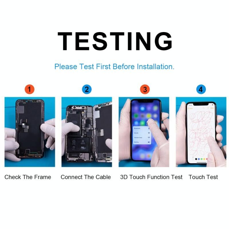 Screen replacement is very fragile product. We strongly suggest test before installation. Please simulates testing, which means mobile phone apart, (motherboard + LCD or screen) connected audio cable and new replacement, power on, test finished. If test OK, please install it. If it can not show, please contact us at the very first time. And please do not force it to be installed in mobile phone. We will not be responsible once the screen is installed.