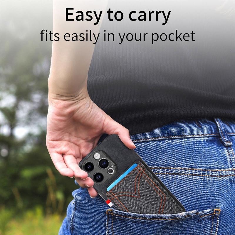 For iPhone 15 Pro Denim Texture Leather Skin Phone Case with Card Slot(Black)