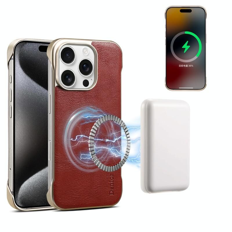 Θήκη τηλεφώνου για iPhone 15 Pro Denior MagSafe από γνήσιο δέρμα μοσχαριού με υφή (Μαύρο) (Denior)