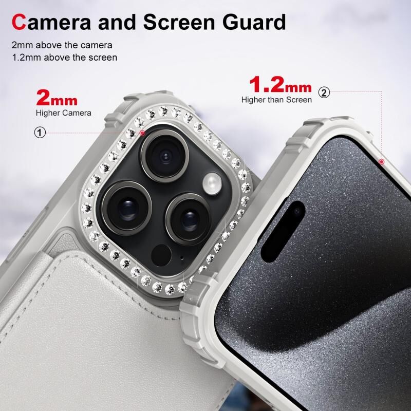 7. Stylish Bling Glitter Rhinestone Diamond Lens Frame: Beauty diamonds that sparkle and shine, making your phone look more stylish and luxurious.