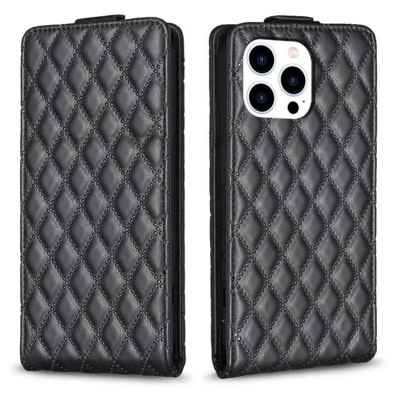 Θήκη τηλεφώνου από δέρμα με κάθετη αναδίπλωση και διαμαντένιο πλέγμα για iPhone 15 Pro (Σκούρο Μωβ)