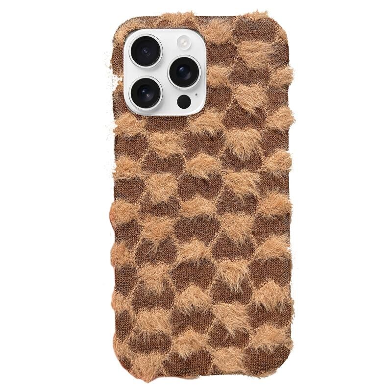 For iPhone 15 Pro Dot Plush TPU Phone Case(Brown)