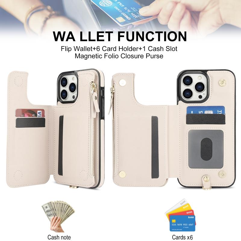 For iPhone 15 Pro Double Flap Zipper RFID Leather Phone Case with Short Lanyard(White)
