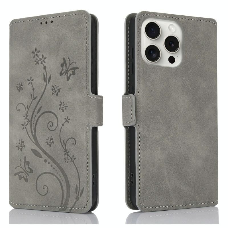 Θήκη τηλεφώνου από δέρμα με ανάγλυφο σχέδιο πεταλούδας και λουλουδιών για iPhone 15 Pro (Χρυσαφί Ροζ)