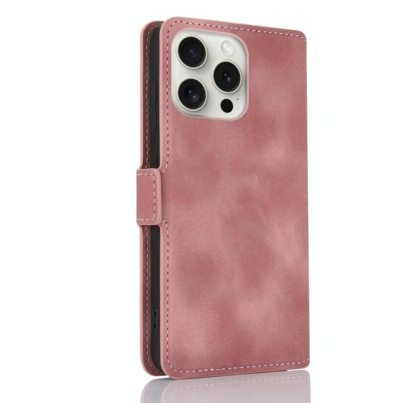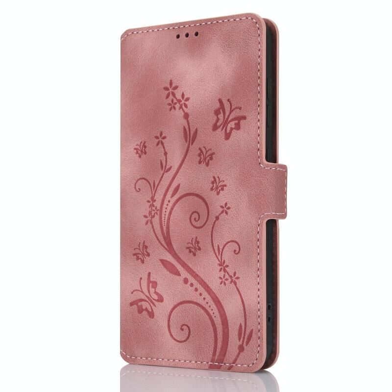 Θήκη τηλεφώνου από δέρμα με ανάγλυφο σχέδιο πεταλούδας και λουλουδιών για iPhone 15 Pro (Χρυσαφί Ροζ)