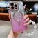 For iPhone 15 Pro Dual-Love Feather Gradient Glitter Bracelets Magsafe TPU Phone Case(Pink)