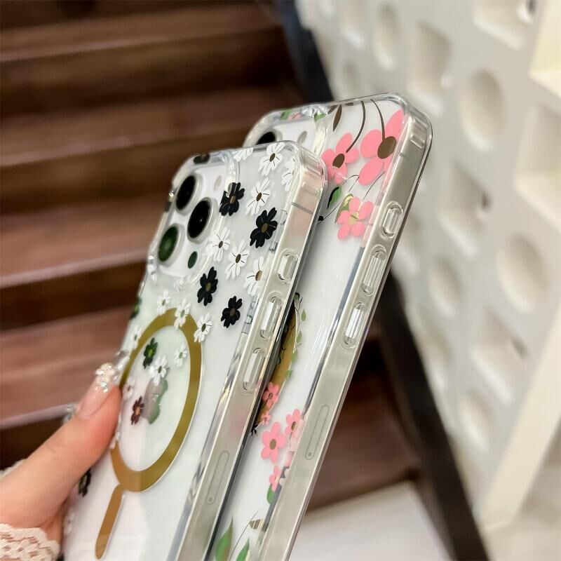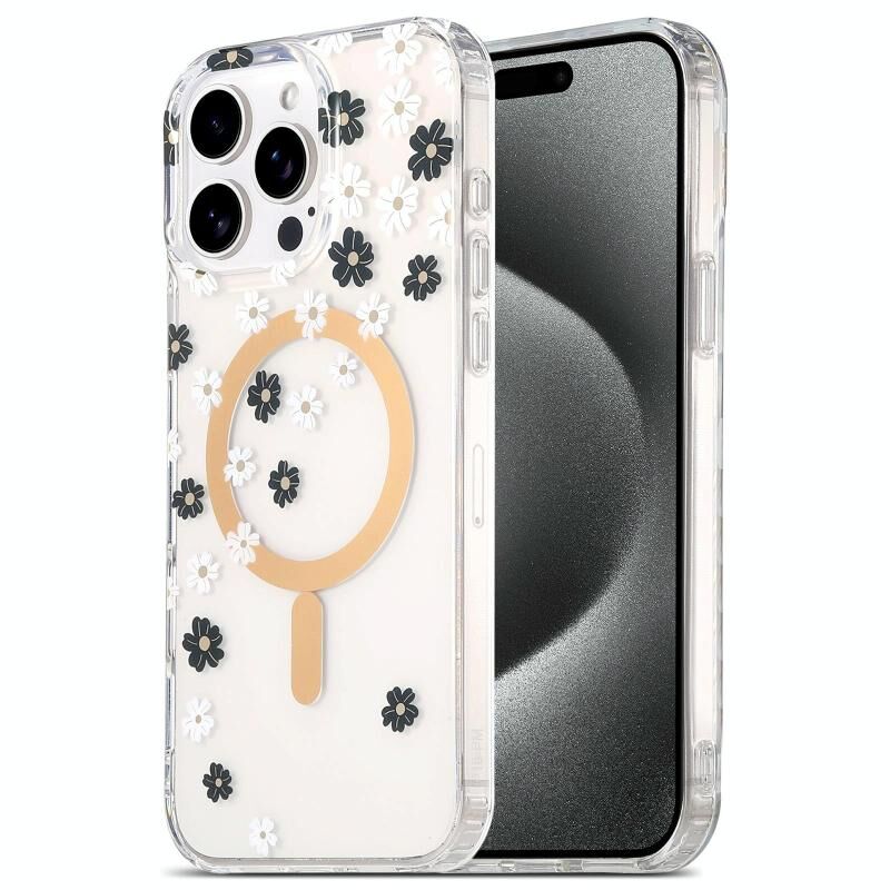 Θήκη τηλεφώνου για iPhone 15 Pro με Laminating IMD MagSafe διπλής όψης (Μαργαρίτες Μαύρο και Άσπρο)