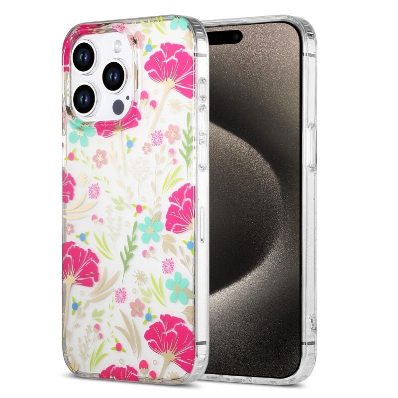 For iPhone 15 Pro Dual-side Laminating IMD PC Hybrid TPU Phone Case(Cop-rose)