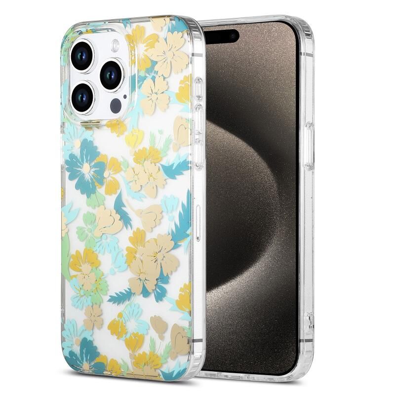 Θήκη τηλεφώνου για iPhone 15 Pro, Υβριδική από PC και TPU με τεχνολογία IMD και Laminating διπλής όψης (Κίτρινα Λουλούδια)