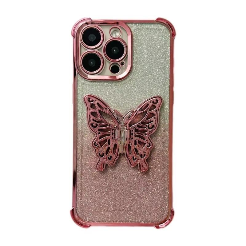 Θήκη τηλεφώνου TPU για iPhone 15 Pro με ηλεκτρολυτική λάμψη, τρισδιάστατο πεταλούδα και προστασία από κρούσεις στις τέσσερις γωνίες (βαθμιδωτό ροζ)