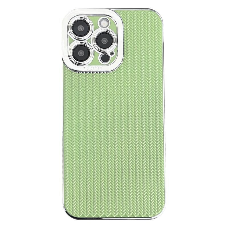 For iPhone 15 Pro Electroplated Silver Edge Grain Texture TPU Phone Case(Green)
