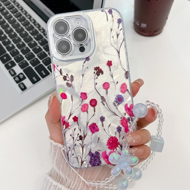 For iPhone 15 Pro Electroplating Flowers Plants Texture Wristband TPU Phone Case(Carnation FL7)