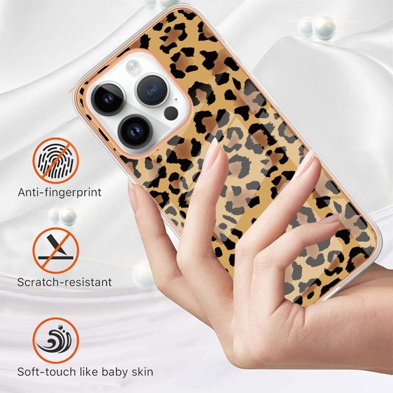 Θήκη τηλεφώνου για iPhone 15 Pro με ηλεκτρολυτική μαρμάρινη επένδυση IMD διπλής όψης (εκτύπωση λεοπάρδαλης)