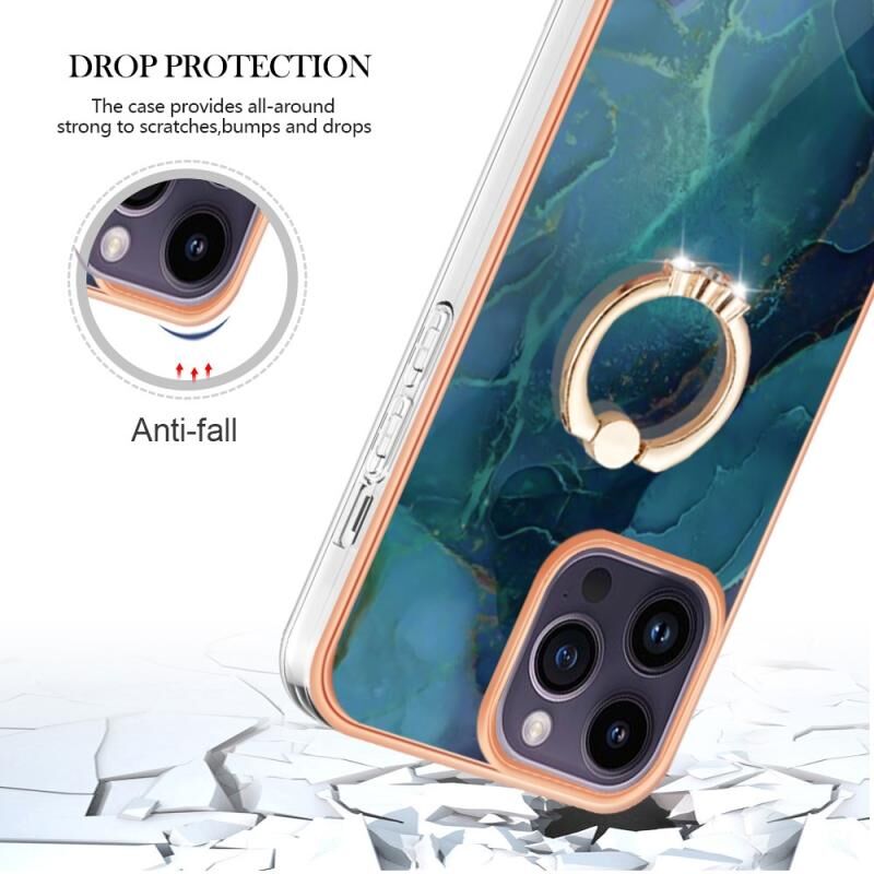 For iPhone 15 Pro Electroplating Marble Dual-side IMD Phone Case with Ring(Green 017)