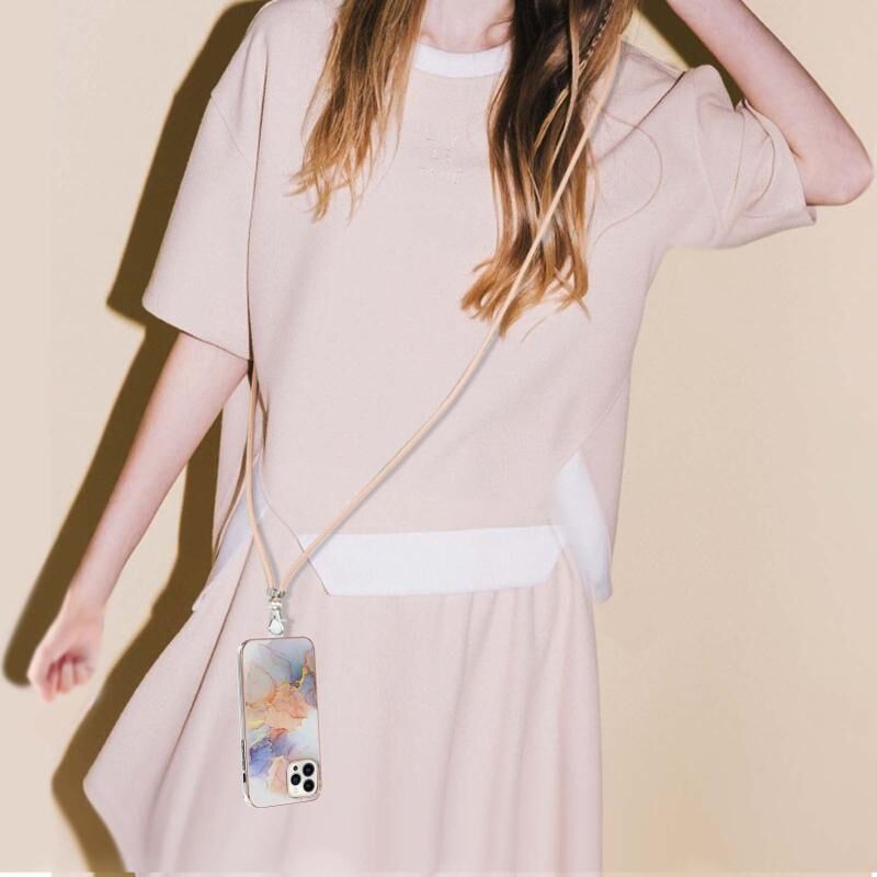 Θήκη για iPhone 15 Pro με Επικάλυψη Ηλεκτρολυτικής Επεξεργασίας, Μοτίβο IMD, Αντικραδασμική από TPU με Λουρί Λαιμού (Λευκό μάρμαρο Γαλαξία (Levko marmaro Galaxia))