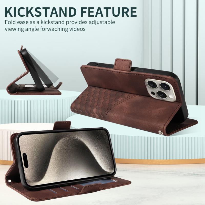 For iPhone 15 Pro Embossed Rhombus Starry Leather Phone Case(Brown)