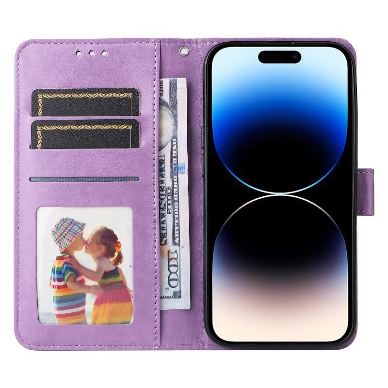 Θήκη τηλεφώνου από δέρμα με ανάγλυφο ηλίανθο για iPhone 15 Pro (Μωβ)