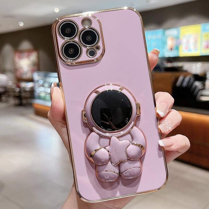 Θήκη κινητού τηλεφώνου για iPhone 15 Pro με ηλεκτρολυτική επίστρωση, αστροναύτη και σχέδιο αστεριών (Μωβ)