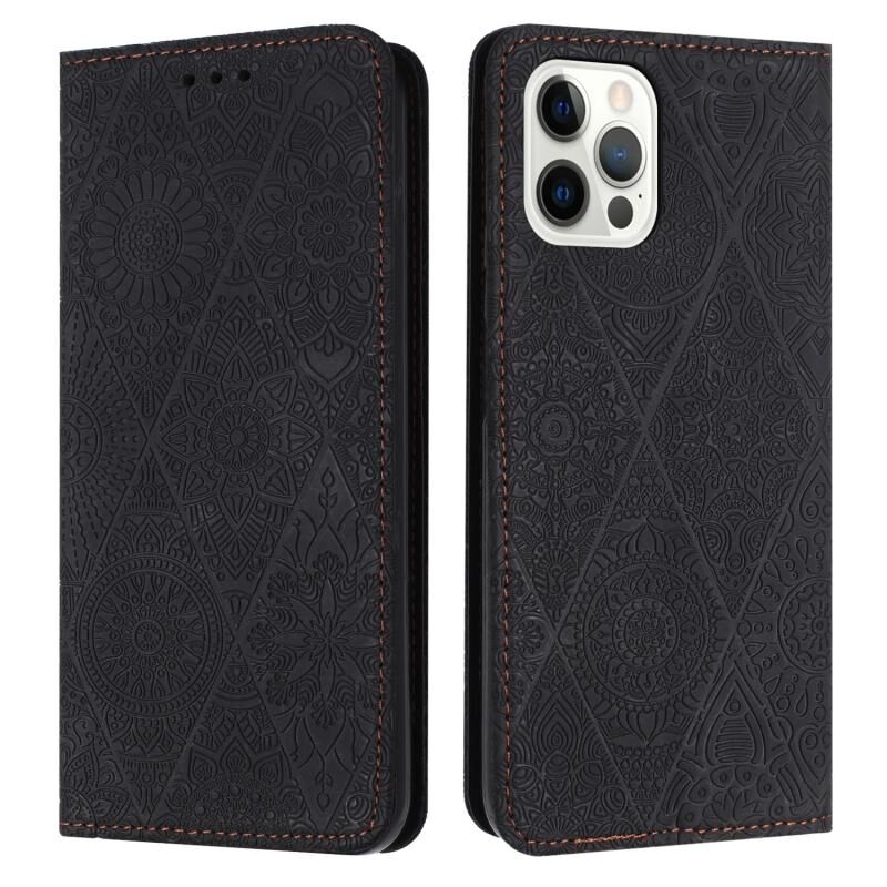Θήκη τηλεφώνου από δέρμα με απορρόφηση και εθνοτικό ανάγλυφο για iPhone 15 Pro (Μπλε)
