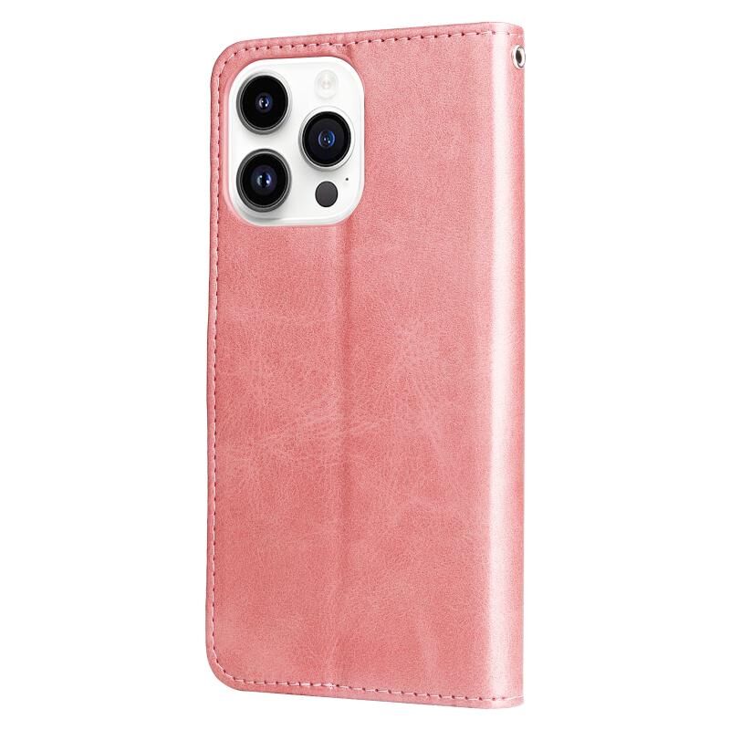 For iPhone 15 Pro Fashion Calf Texture Zipper Leather Phone Case(Rose Gold)