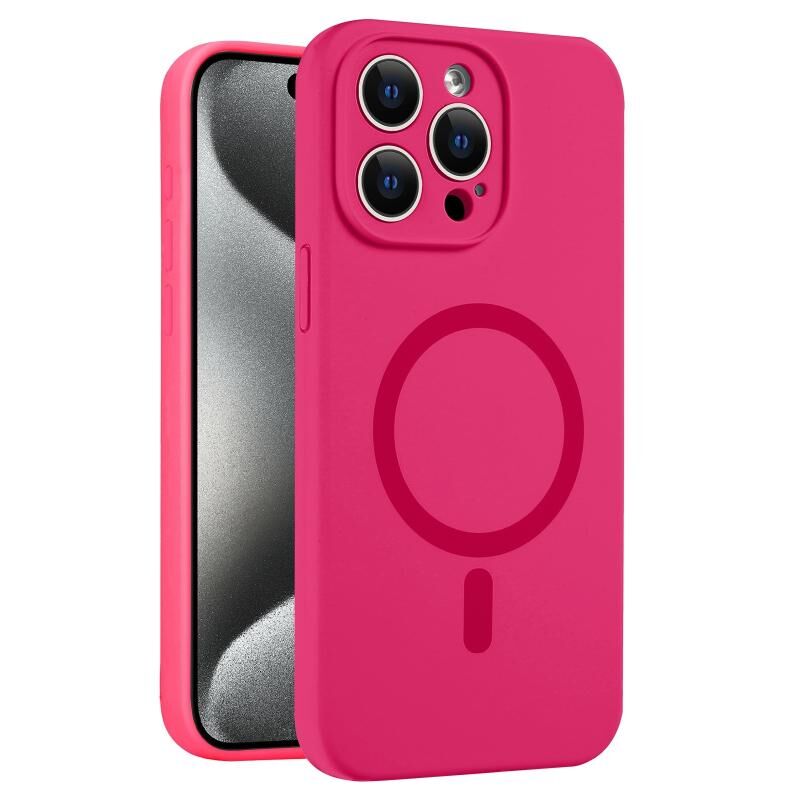 For iPhone 15 Pro Fine Hole Pure Color Liquid Silicone MagSafe Phone Case(Rose Red)