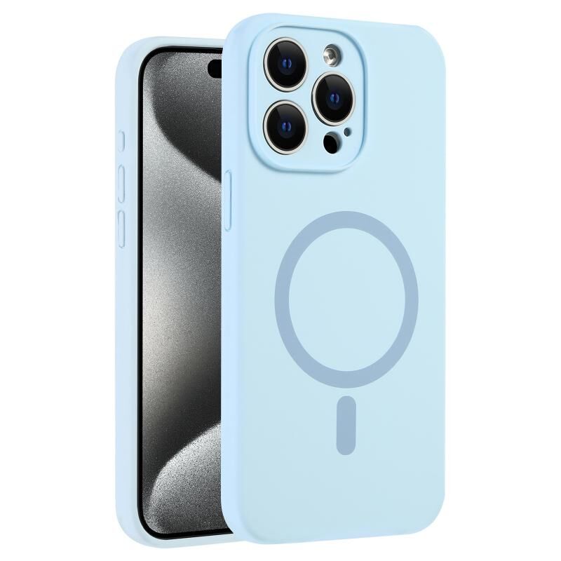 Θήκη τηλεφώνου MagSafe υγρής σιλικόνης καθαρού χρώματος με λεπτές οπές για iPhone 15 Pro (Μπλε Σιέρρα)
