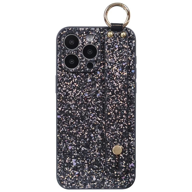 Θήκη τηλεφώνου για iPhone 15 Pro με Λουρί Χεριού από Διαμάντι (Μαύρο Φλας)
