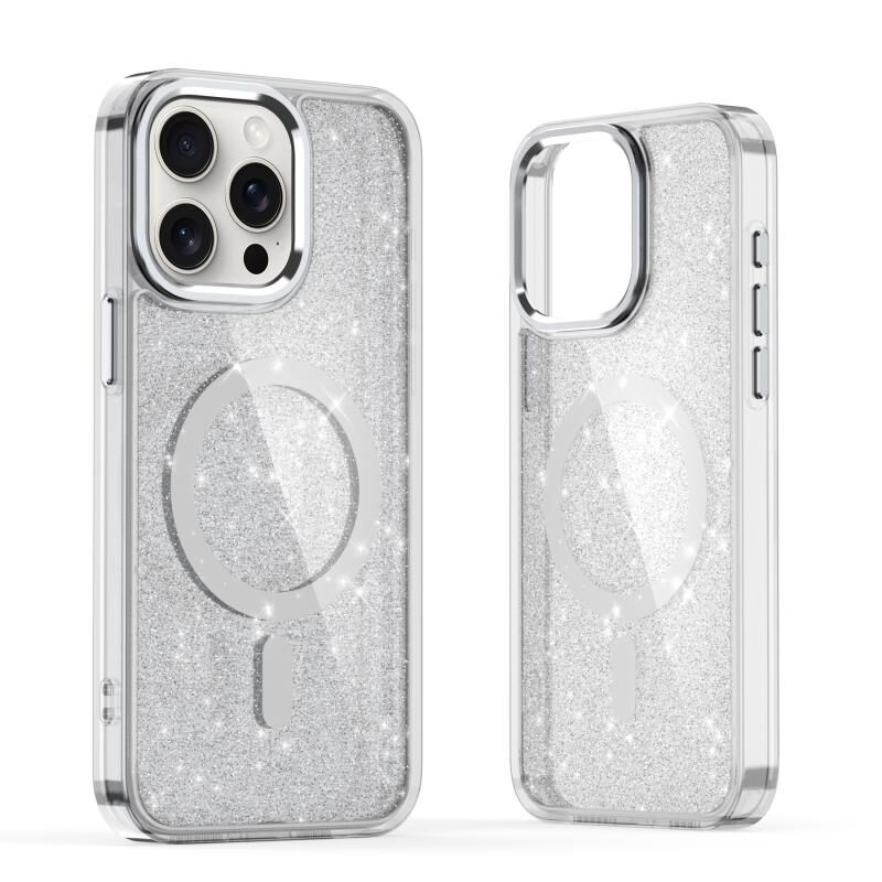 Θήκη για iPhone 15 Pro με Glitter, MagSafe και αντικραδασμική προστασία (Ροζ)