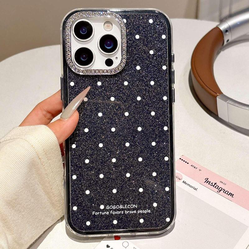 For iPhone 15 Pro Glitter Powder Dots Pattern Rhinestone Large Hole Phone Case(Black)