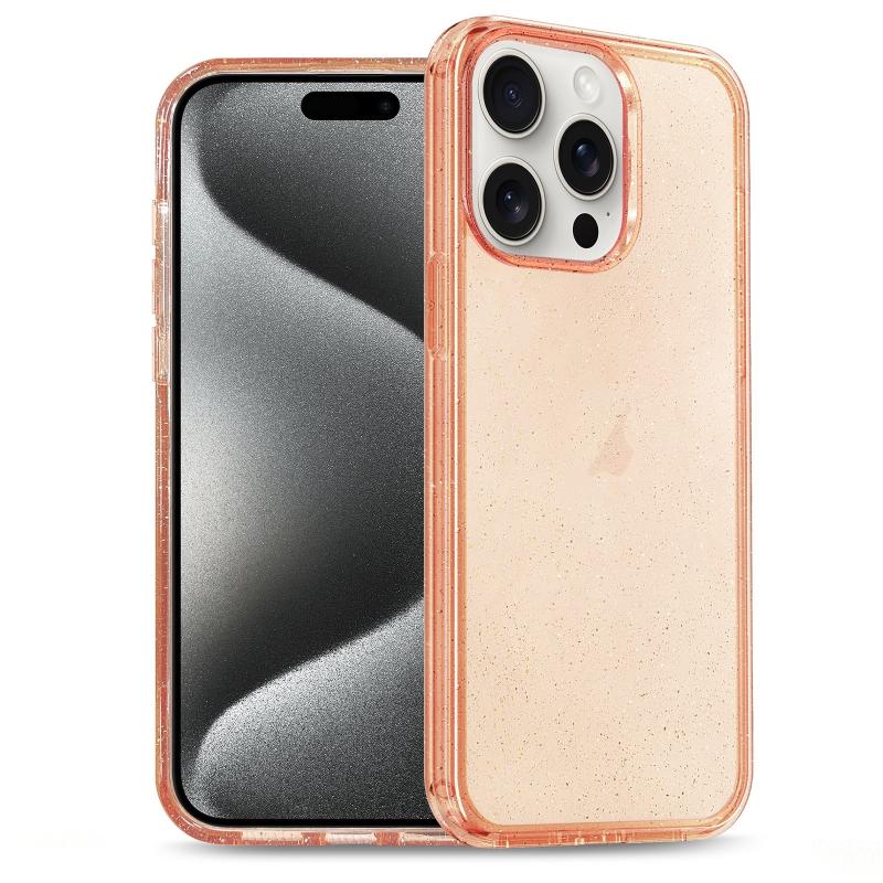 Θήκη τηλεφώνου υβριδική TPU PC με γκλίτερ σε σκόνη για iPhone 15 Pro (Πορτοκαλί)
