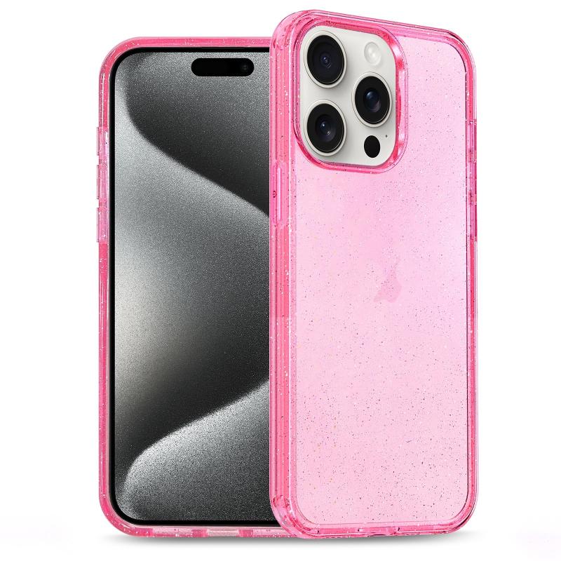 For iPhone 15 Pro Glitter Powder TPU Hybrid PC Phone Case(Pink)