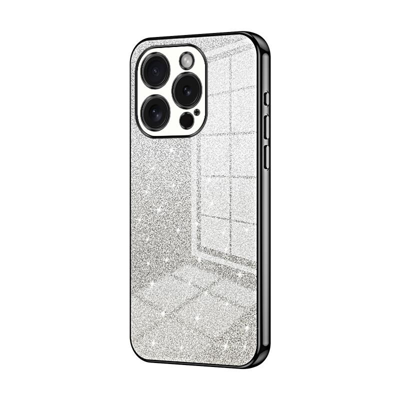 For iPhone 15 Pro Gradient Glitter Powder Electroplated Phone Case(Black)