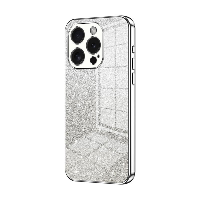Θήκη τηλεφώνου με διαβάθμιση, γκλίτερ σε σκόνη, επιμεταλλωμένη για iPhone 15 Pro (Ασημί)