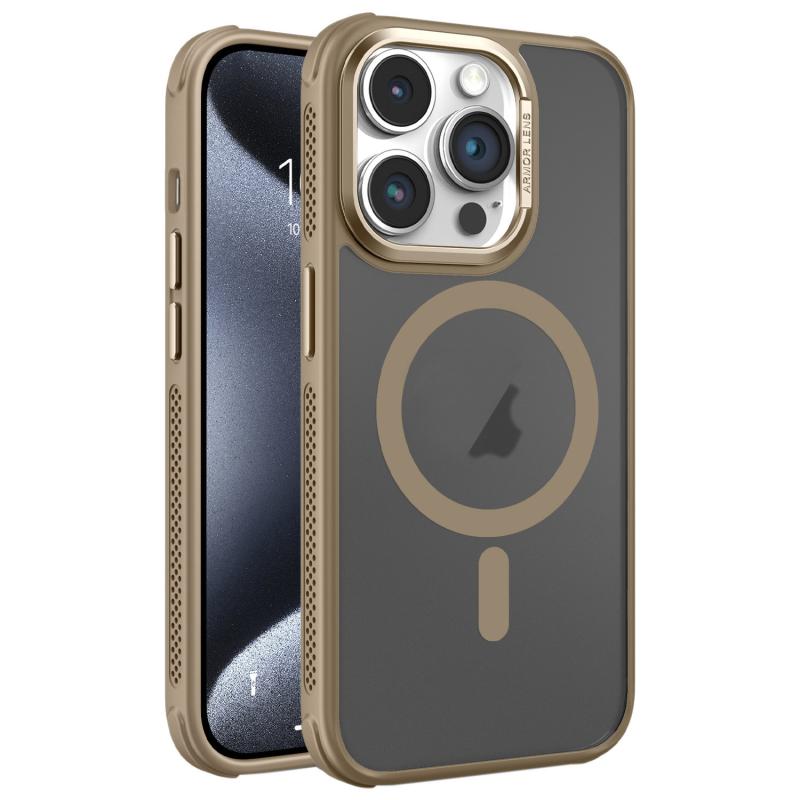 For iPhone 15 Pro Hardware Side Cooling Skin Feel Frosted Metal Lens Frame MagSafe Phone Case(Gold)