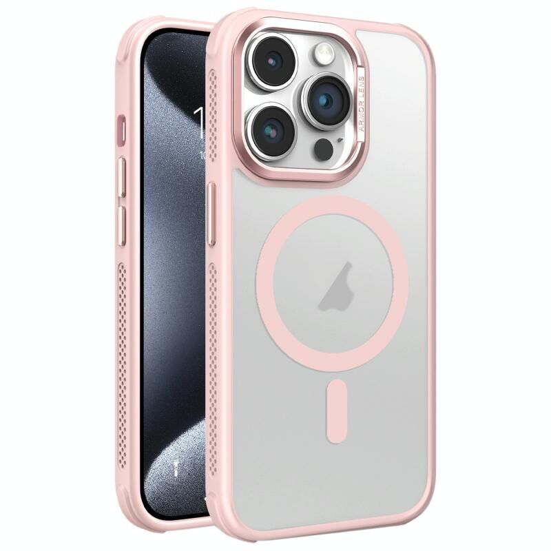 Θήκη τηλεφώνου για iPhone 15 Pro με ψύξη υλικού, αίσθηση δέρματος, μεταλλική αφή με ματ φινίρισμα, πλαίσιο φακού και MagSafe (Ροζ)