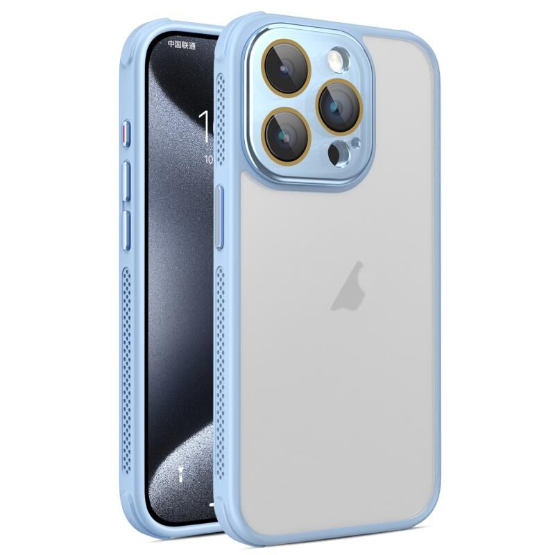 For iPhone 15 Pro Hardware Side Cooling Skin Feel Frosted Phone Case with Lens Film(Sky Blue)