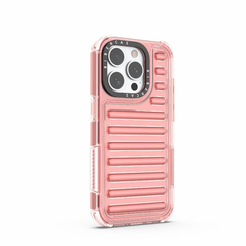 For iPhone 15 Pro High Transparency TPU Hybrid PC Airbag Phone Case(Peach Red)