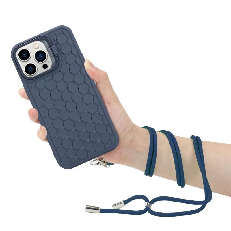 Θήκη τηλεφώνου TPU για iPhone 15 Pro με σχέδιο κυψελωτού και λουρί (Μπλε)