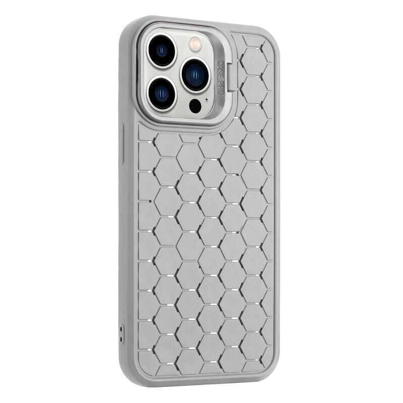 For iPhone 15 Pro Honeycomb Radiating Lens Holder TPU Phone Case(Grey)