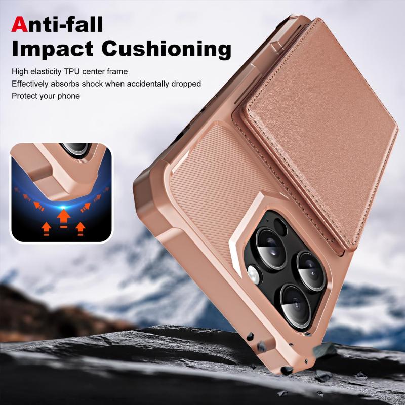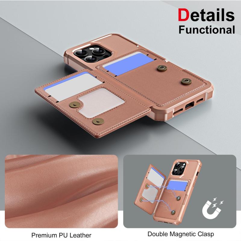 For iPhone 15 Pro Horizontal Flip Card Bag Holder Leather Phone Case(Rose Gold)