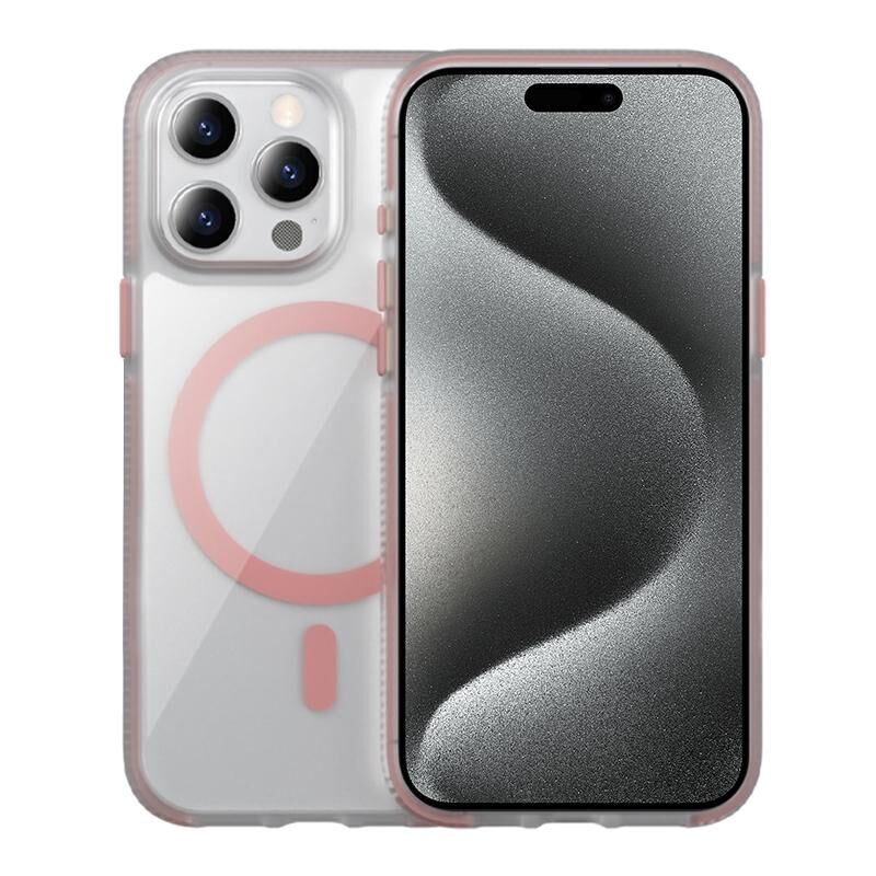 For iPhone 15 Pro Ice Skin MagSafe PC Hybrid TPU Phone Case(Pink)