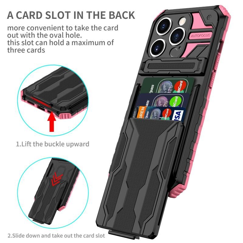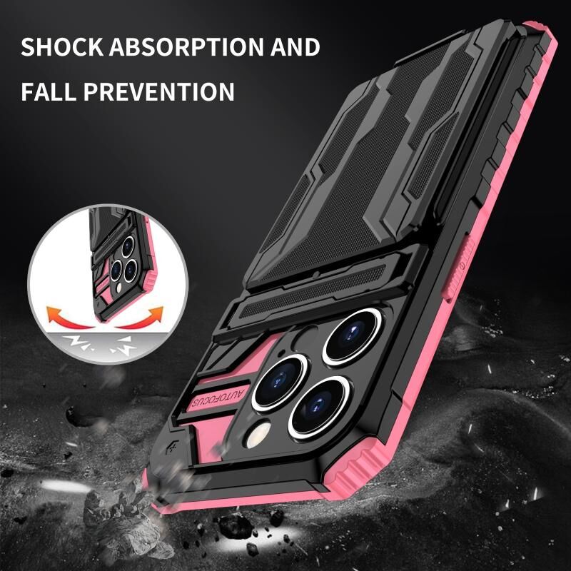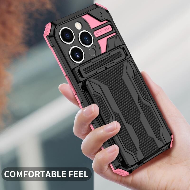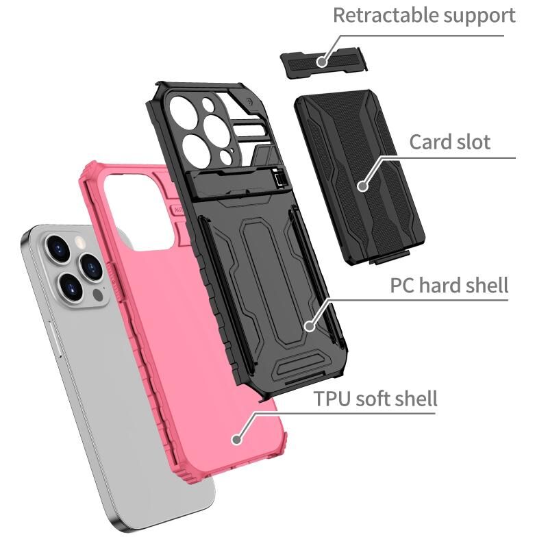 Θήκη τηλεφώνου με βάση στήριξης, θωράκιση και θήκη καρτών για iPhone 15 Pro (Ροζ)