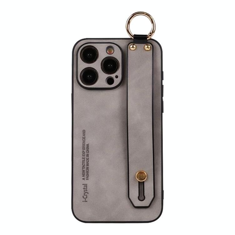 For iPhone 15 Pro Lambskin Wristband Holder Phone Case(Light Grey)