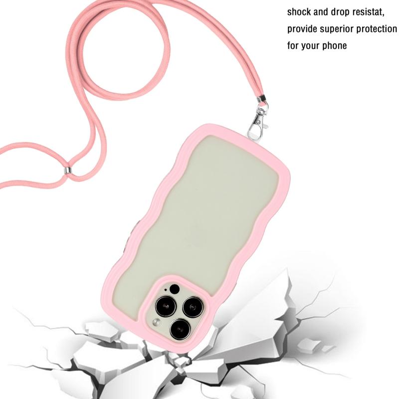 Θήκη τηλεφώνου για iPhone 15 Pro με κορδόνι, διαφανές TPU και PC σε χρώμα καραμέλας (κύμα), κίτρινο.